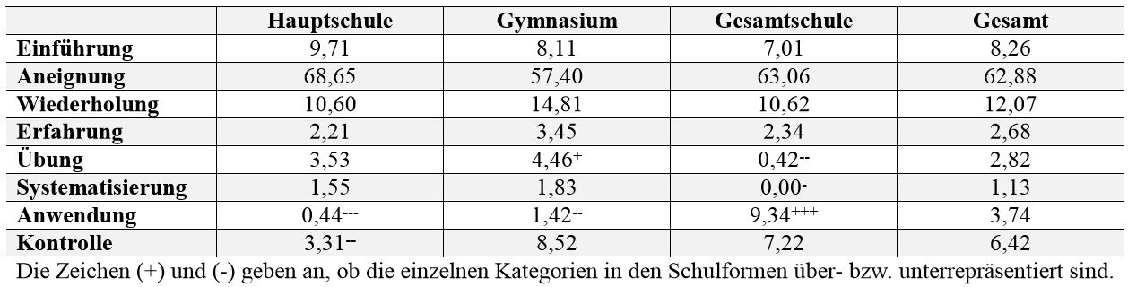 Tabelle 1: Verteilung der methodischen Sequenzen nach Schulformen in % (vgl. Hage 1985, 57)