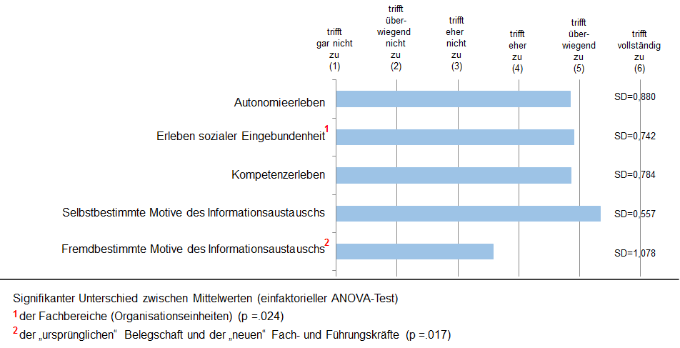 - inwieweit die Fach- und Führungskräfte die Partizipationskultur (Erleben sozialer Eingebundenheit, Kompetenzerleben und Autonomieerleben, vgl. Gagne/Deci 2005) als motivationsförderlich wahrnehmen und bewerten,
